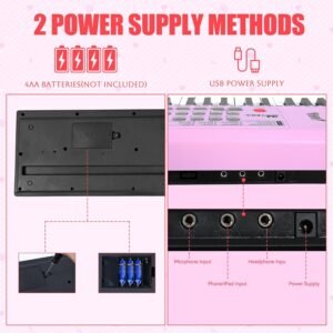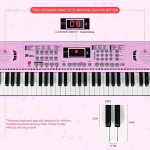 61 Key Electric Keyboard Piano for Kids, Pink Digital Piano with Built-In Speakers, Microphone, Music Sheet Stand & Beginner Modes, Portable Electronic Piano for Children, Early Education Starter Gift
