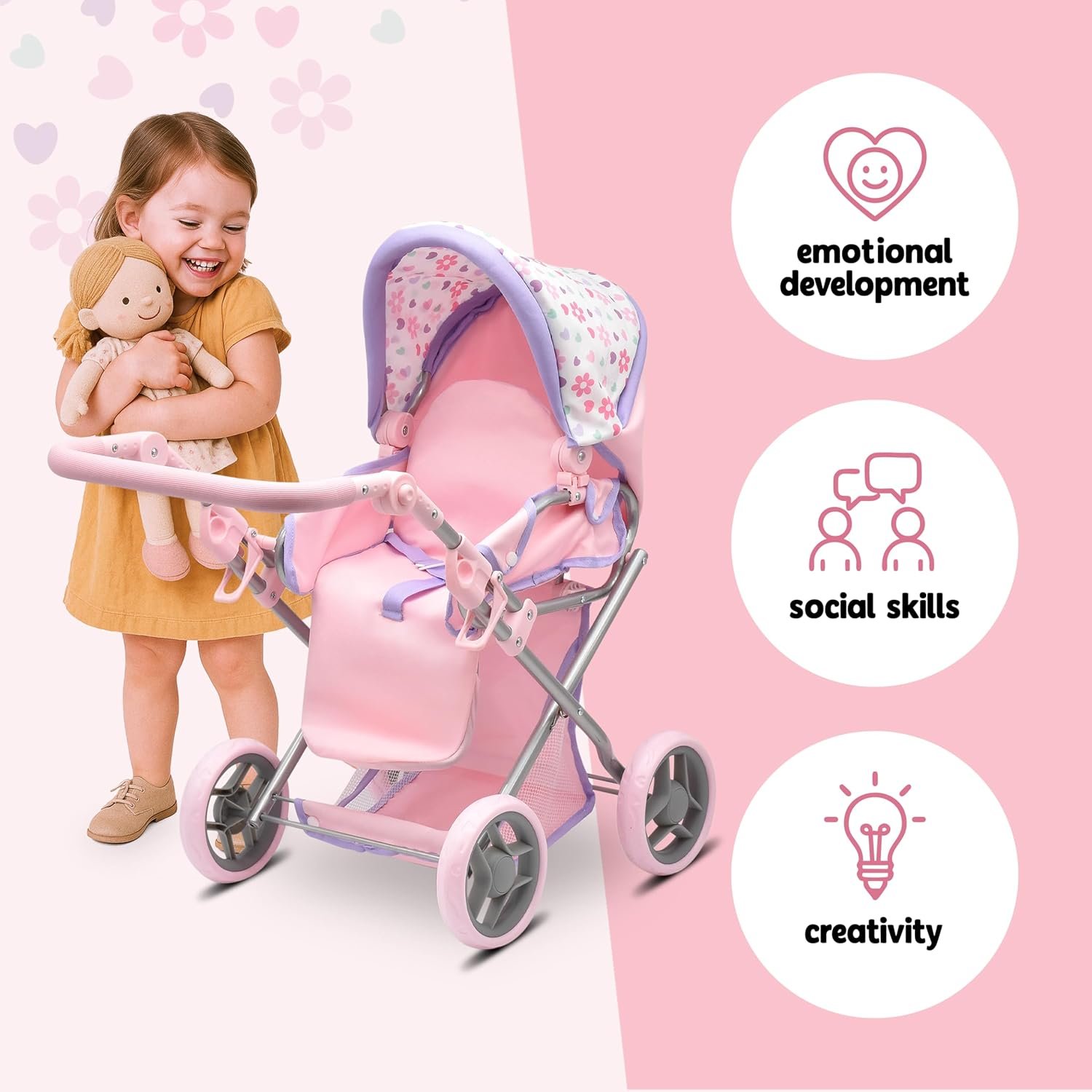 • High Quality & Safety: Built with durable materials and safety child lock wheels our sturdy stroller ensures a secure and smooth ride; perfectly safe for toddlers and kids; encouraging worry free and creative playtime for little girls and toddlers