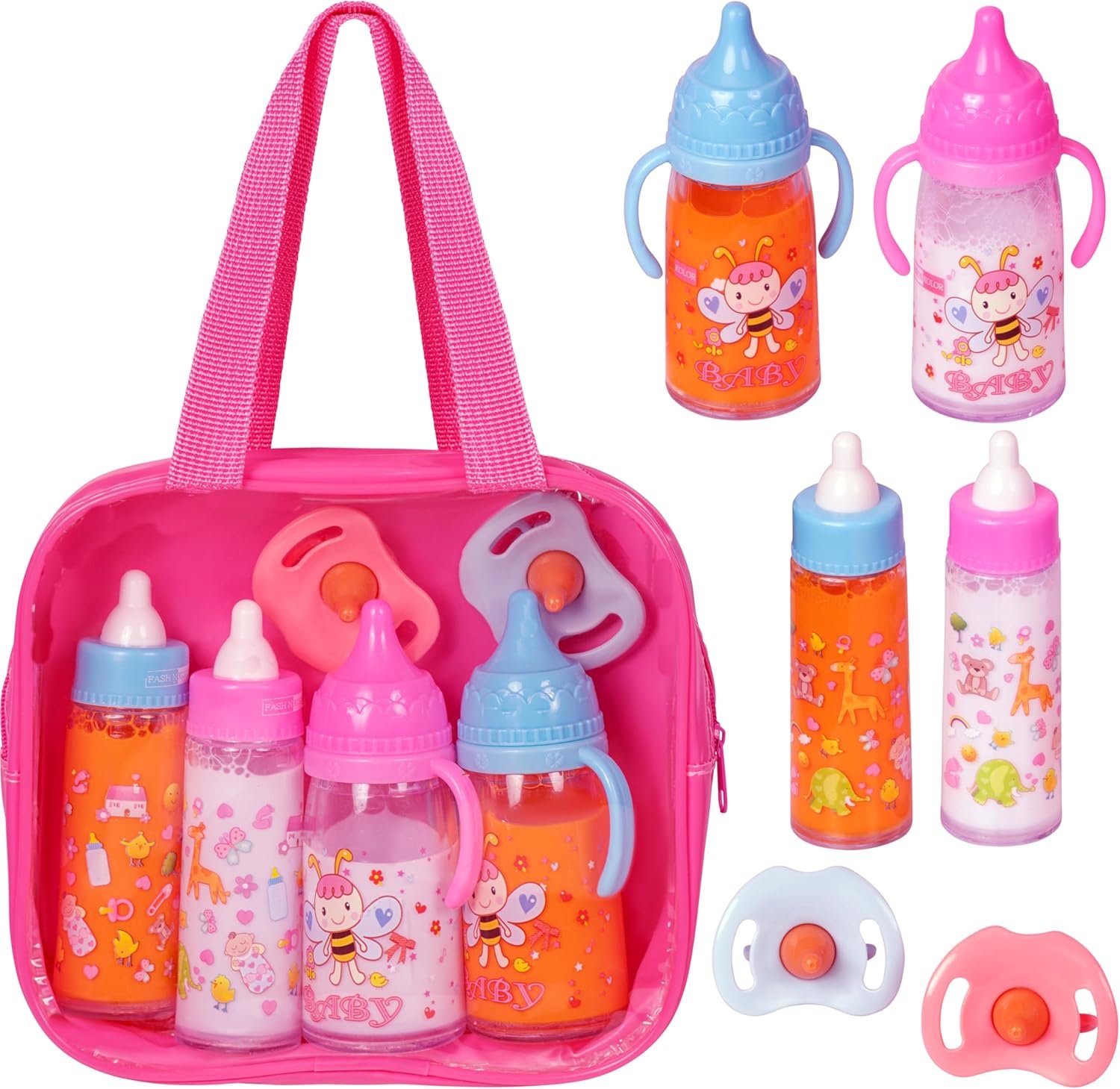 - Interactive & Colorful Design For Kids: Our Baby Doll Care Set With Baby Bottles Comes In A Zippered See Through Toy Bag That Is Ideal For Doll Carriers So Your Little Toddler Can Enjoy Hours Of Pretend Play. Designed With Cute And Colourful Images To Entertain Young Minds, This Feeding Baby Doll Set Will Spark Your Child’S Imagination