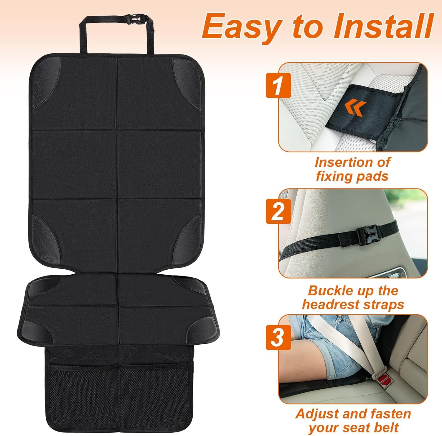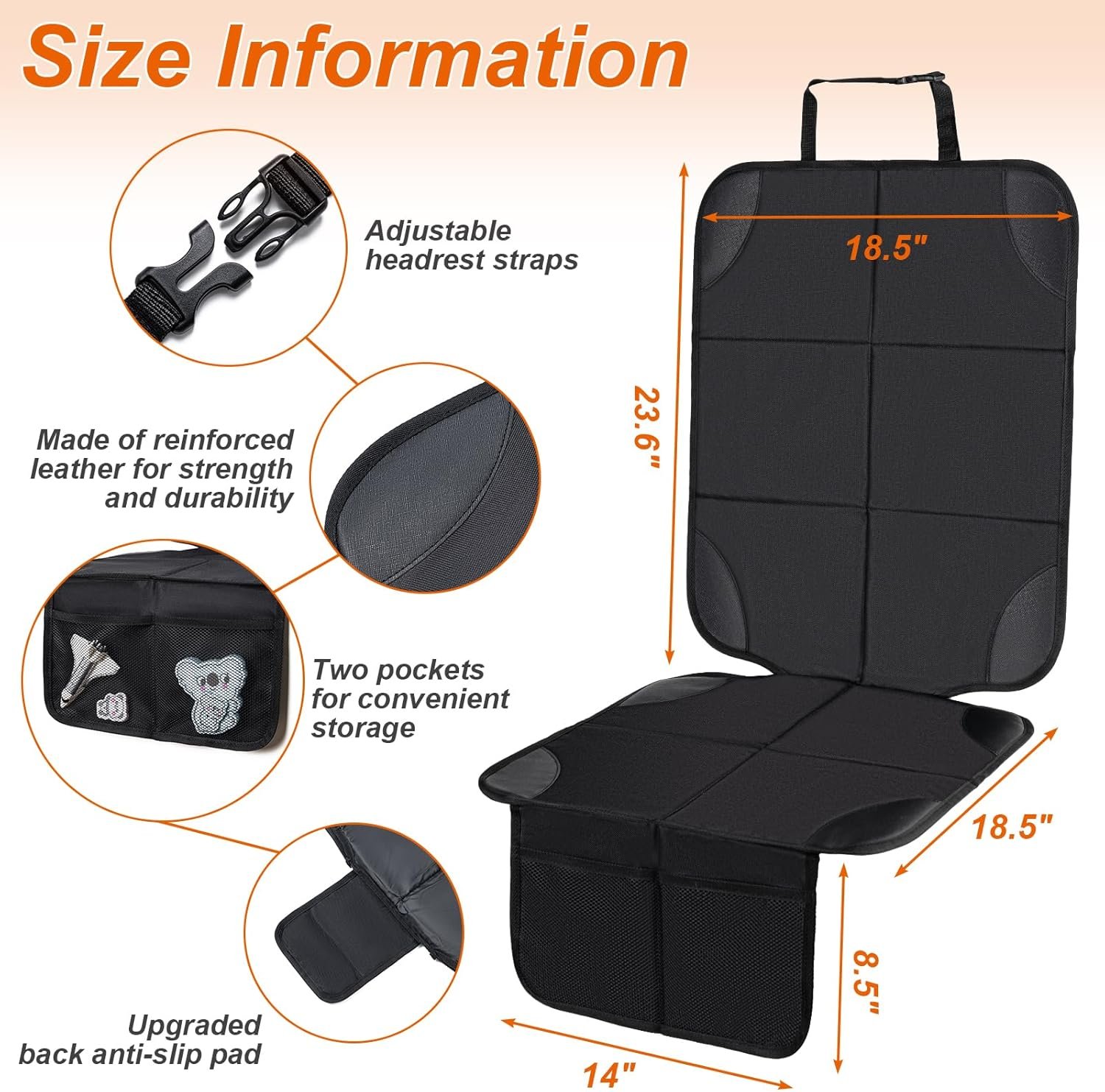 • PROTECT YOUR CARS UPHOLSTERY:Husfunov car seat protector is an accessory designed to protect car interiors from wear and tear. Most parents use it to protect their car seats from kids getting them dirty and causing any potential damage, reducing mess and cleanup time. It also prevents damage to the seat skin and extends the life of the car interior.