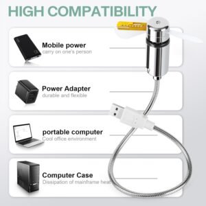 Designed for convenience, the fan is USB-powered, making it compatible with laptops, power banks, desktop PCs, and USB adapters. Its flexible neck allows you to adjust the airflow direction easily, ensuring maximum comfort whether you’re working, studying, or relaxing.