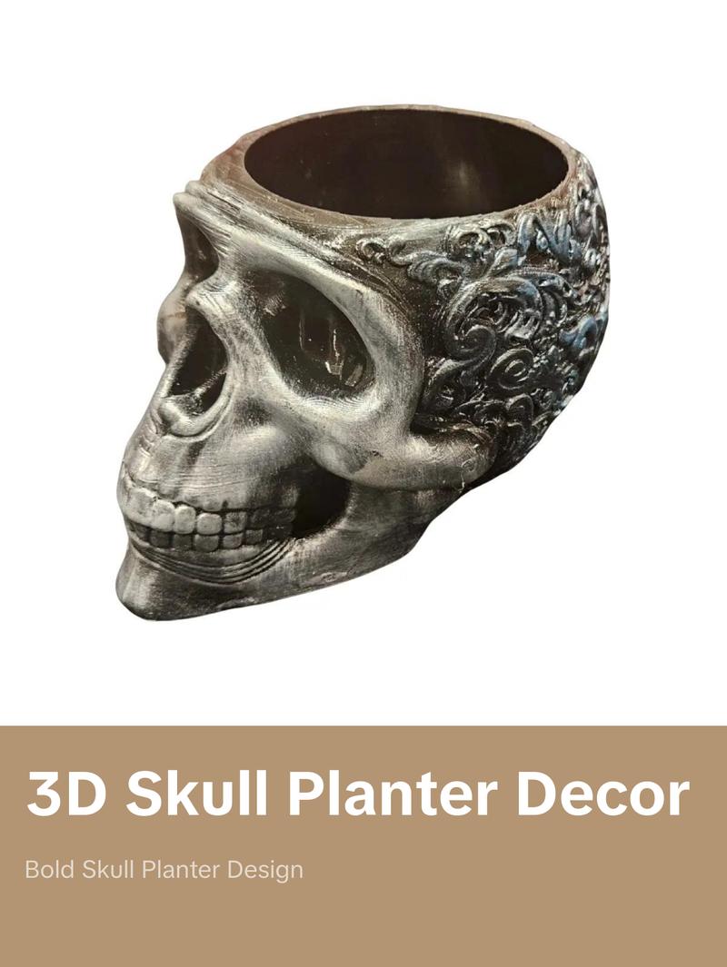 Introducing our 3D printed skull planter, a unique and visually appealing addition to your home decor. This planter is not only functional but also adds a touch of edginess to your space. The skull design is printed in 3D, ensuring that every detail is captured with precision and accuracy. The black, teal, and silver color combination gives the planter a modern and edgy look, making it a great conversation starter.
