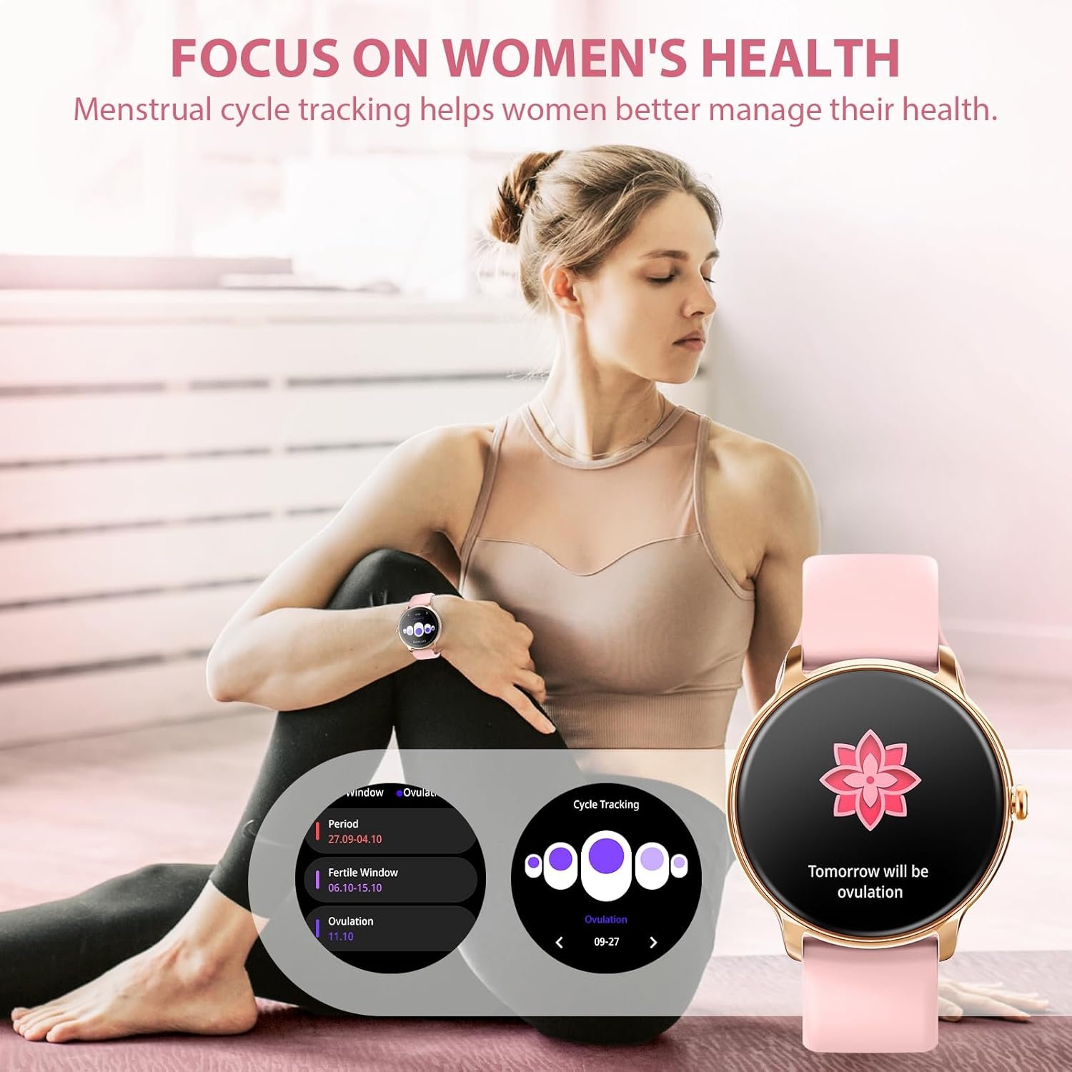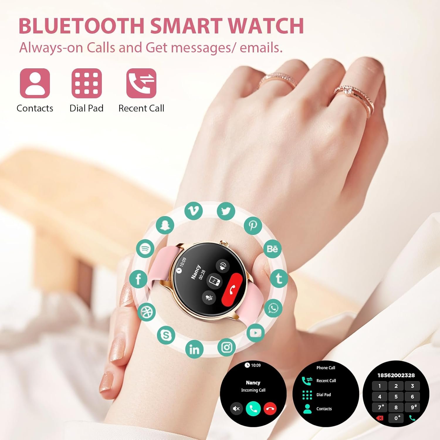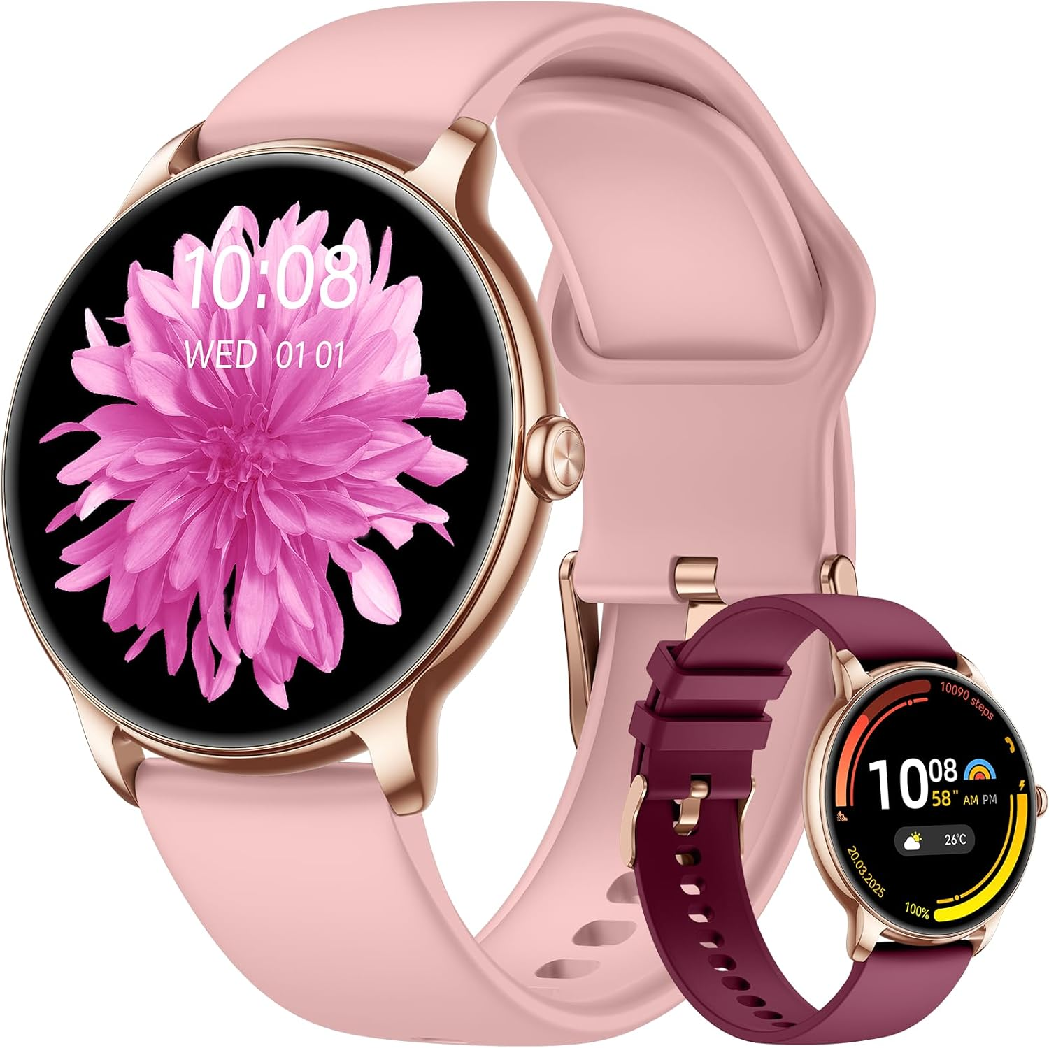 Women’s 1.27" Round Smart Watch with Bluetooth Calling, Fitness Tracker with Heart Rate/Sleep/SpO2, 110+ Sports Modes, IP68 Waterproof – Pink (2 Bands)
